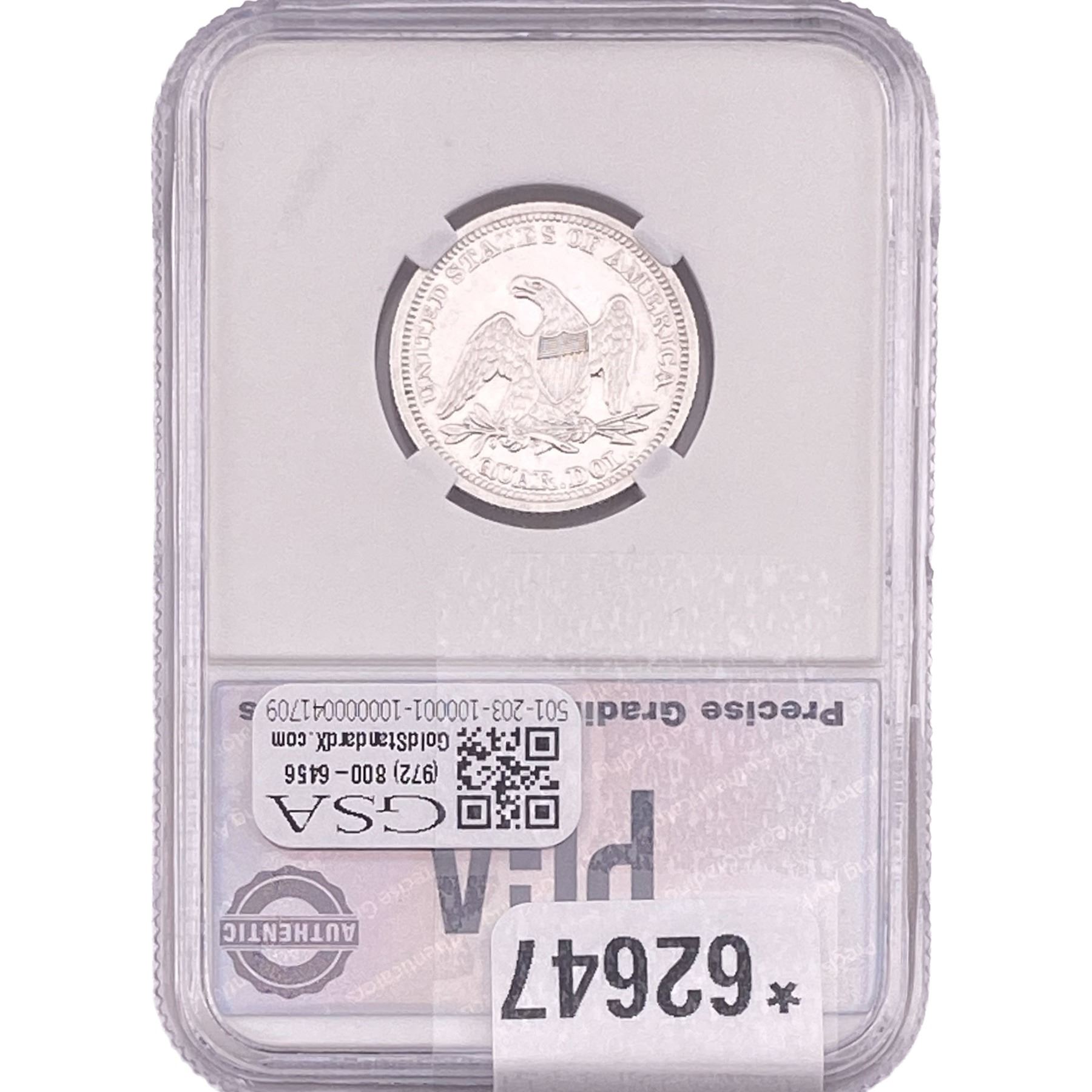 1856 Seated Liberty Quarter PGA MS62
