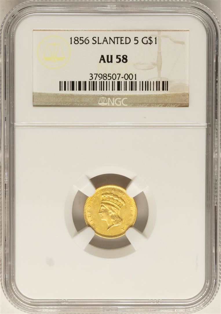 1856 Slanted 5 $1 Indian Princess Head Gold Dollar Coin NGC AU58