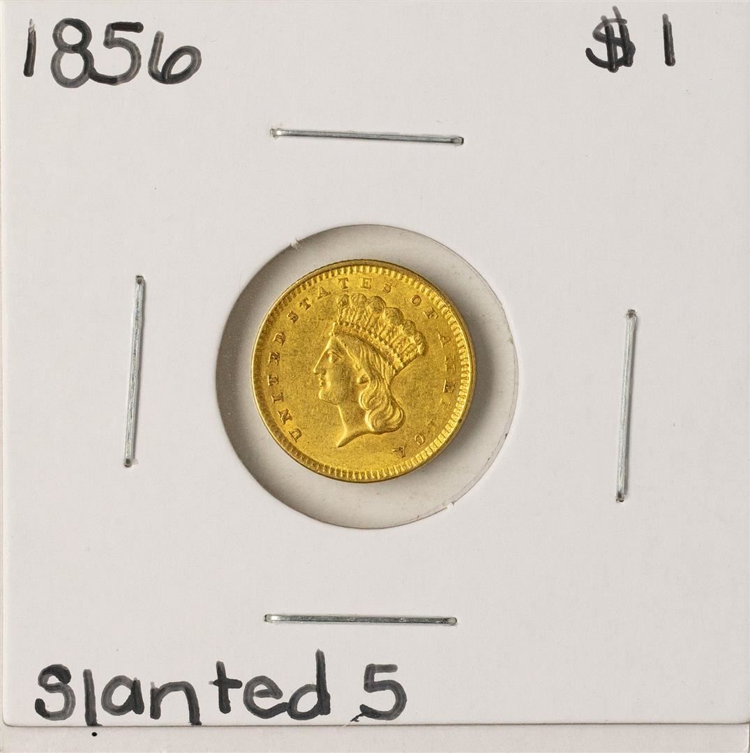 One 1856 Slanted 5 $1 Indian Princess Head Gold Dollar Coin.