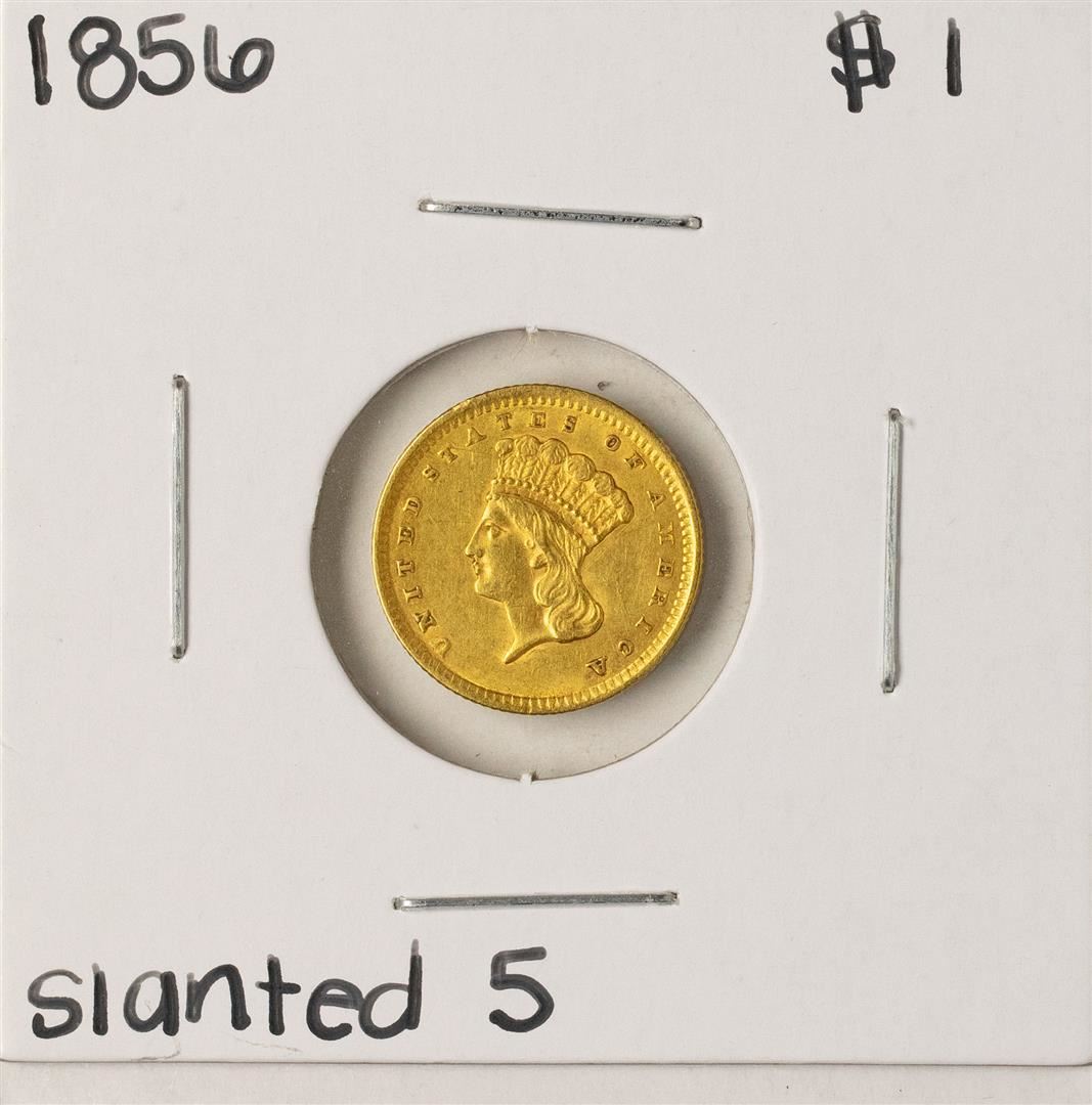 One 1856 Slanted 5 $1 Indian Princess Head Gold Dollar Coin.