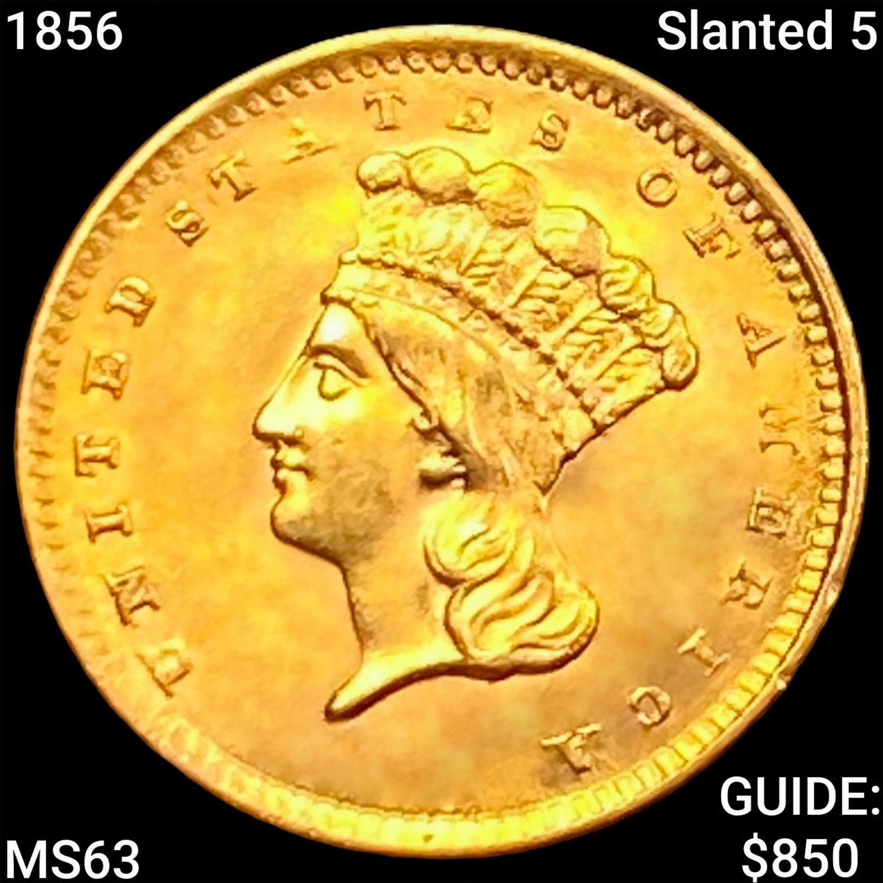 1856 Slanted 5 Rare Gold Dollar CHOICE BU