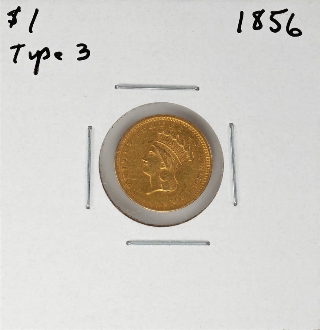 One 1856 Type 3 $1 Indian Princess Head Gold Coin.