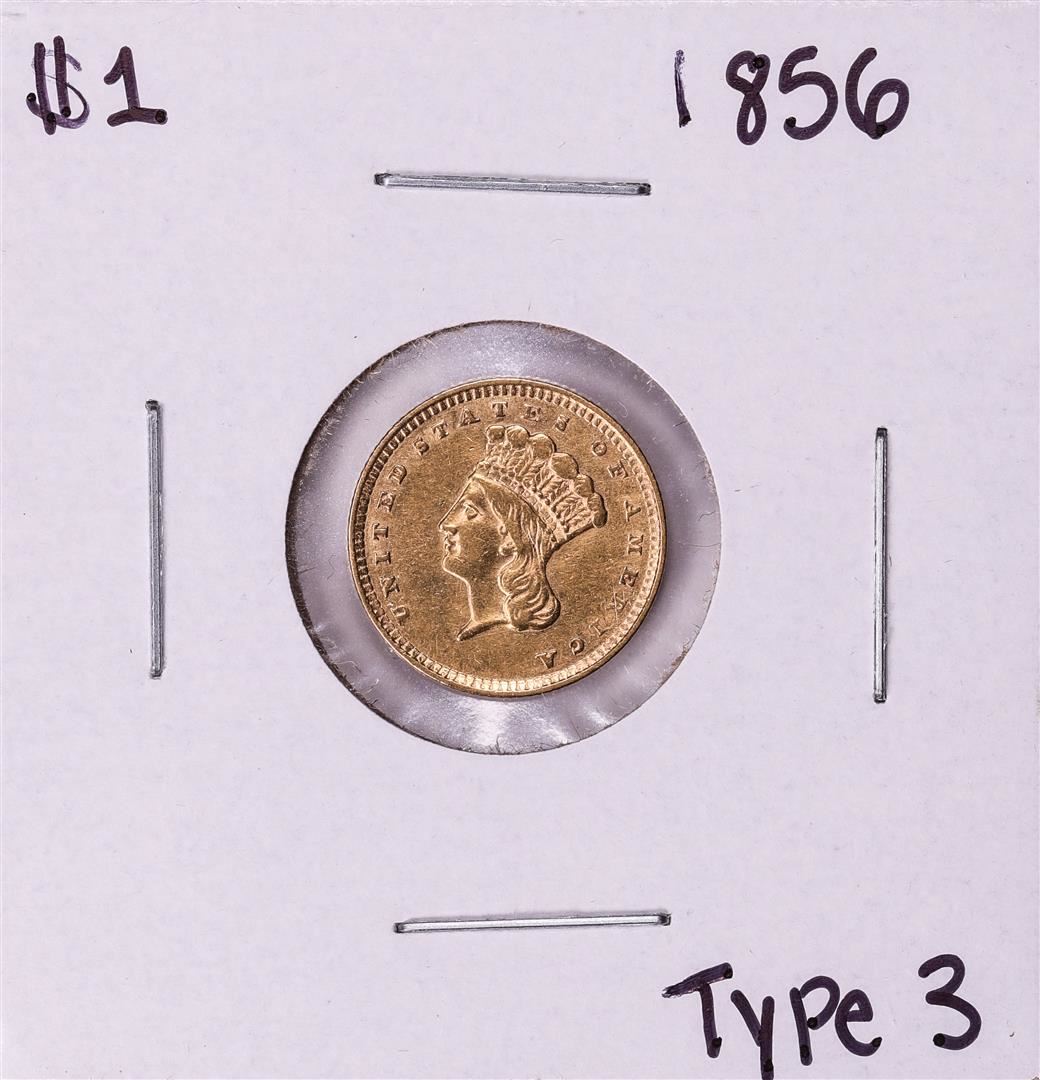 One 1856 Type 3 $1 Indian Princess Head Gold Dollar Coin.