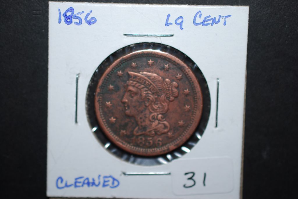 1856 US Large One Cent; Cleaned; EST. $15-20