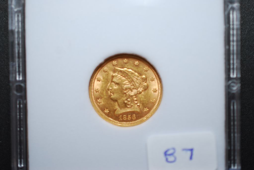 1856 US Liberty $2 1/2 Gold Coin; MCPCG Graded MS62; EST. $325-375
