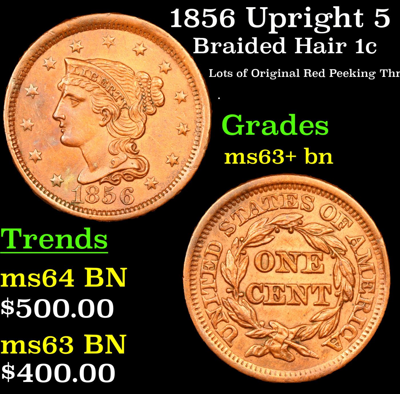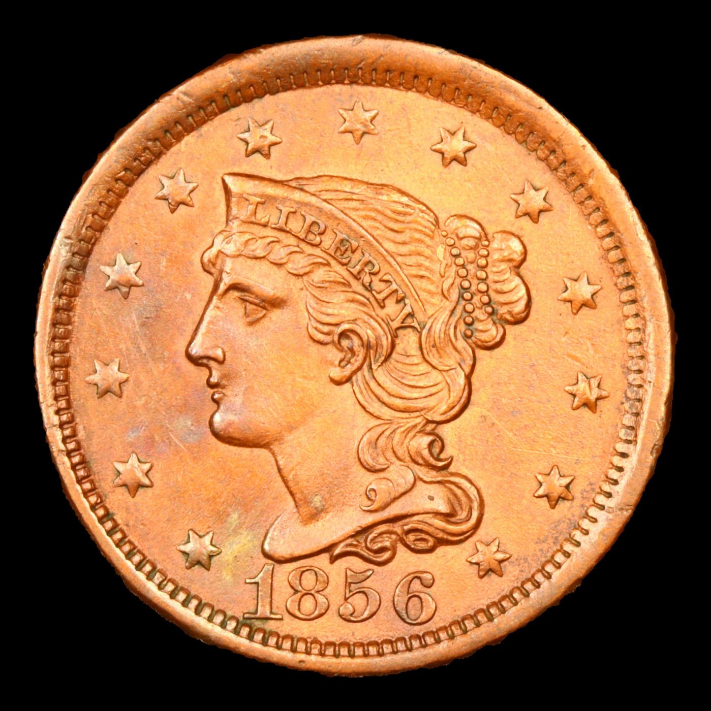 1856 Upright 5 Braided Hair Large Cent 1c Grades Select+ Unc BN.