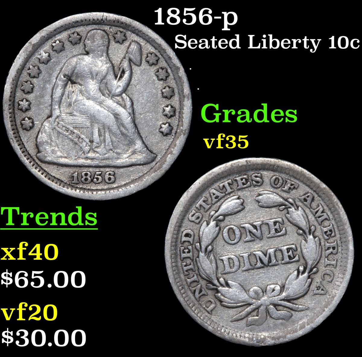 1856-p . . Seated Liberty Dime 10c Grades vf++.