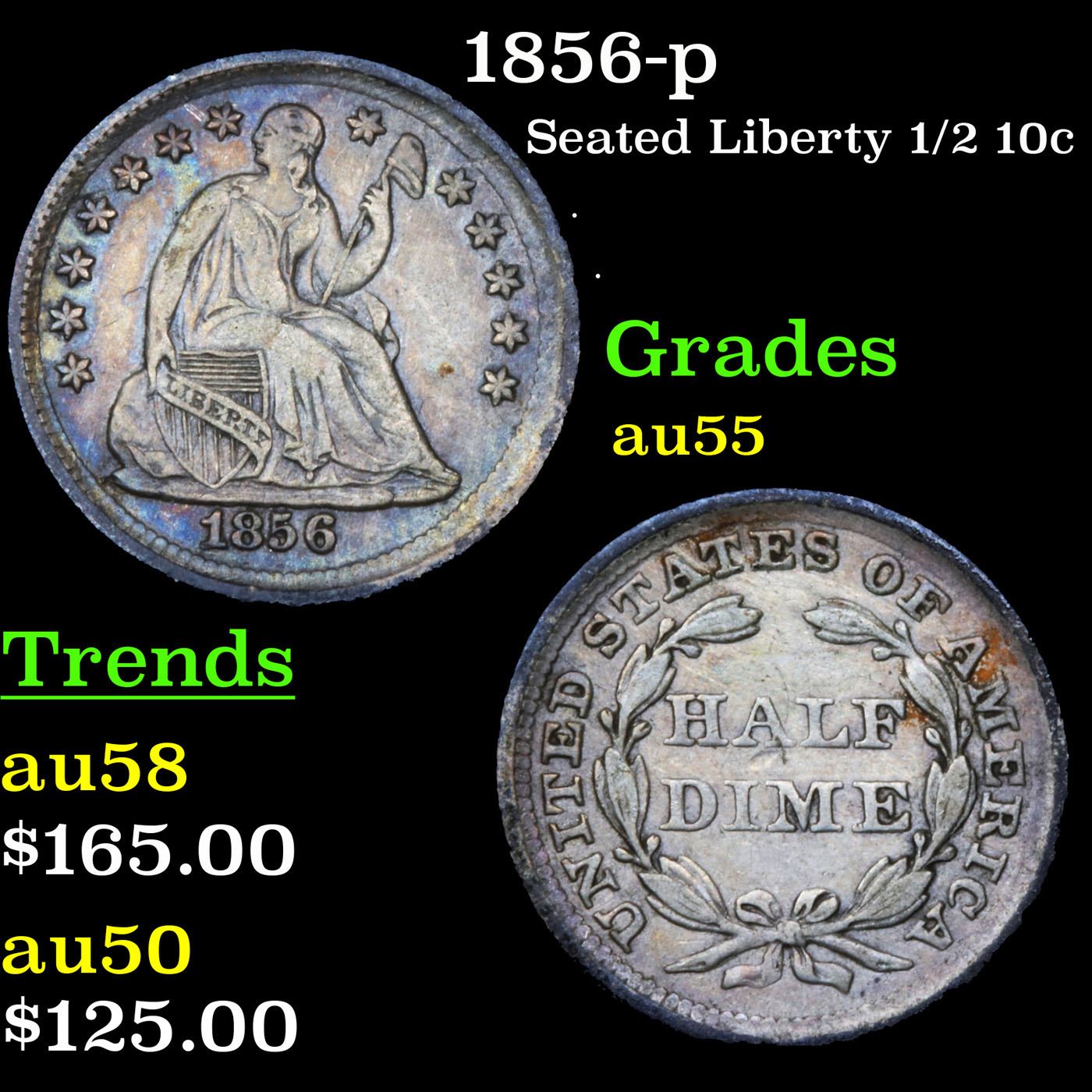 1856-p Seated Liberty Half Dime 1/2 10c Grades Choice AU.