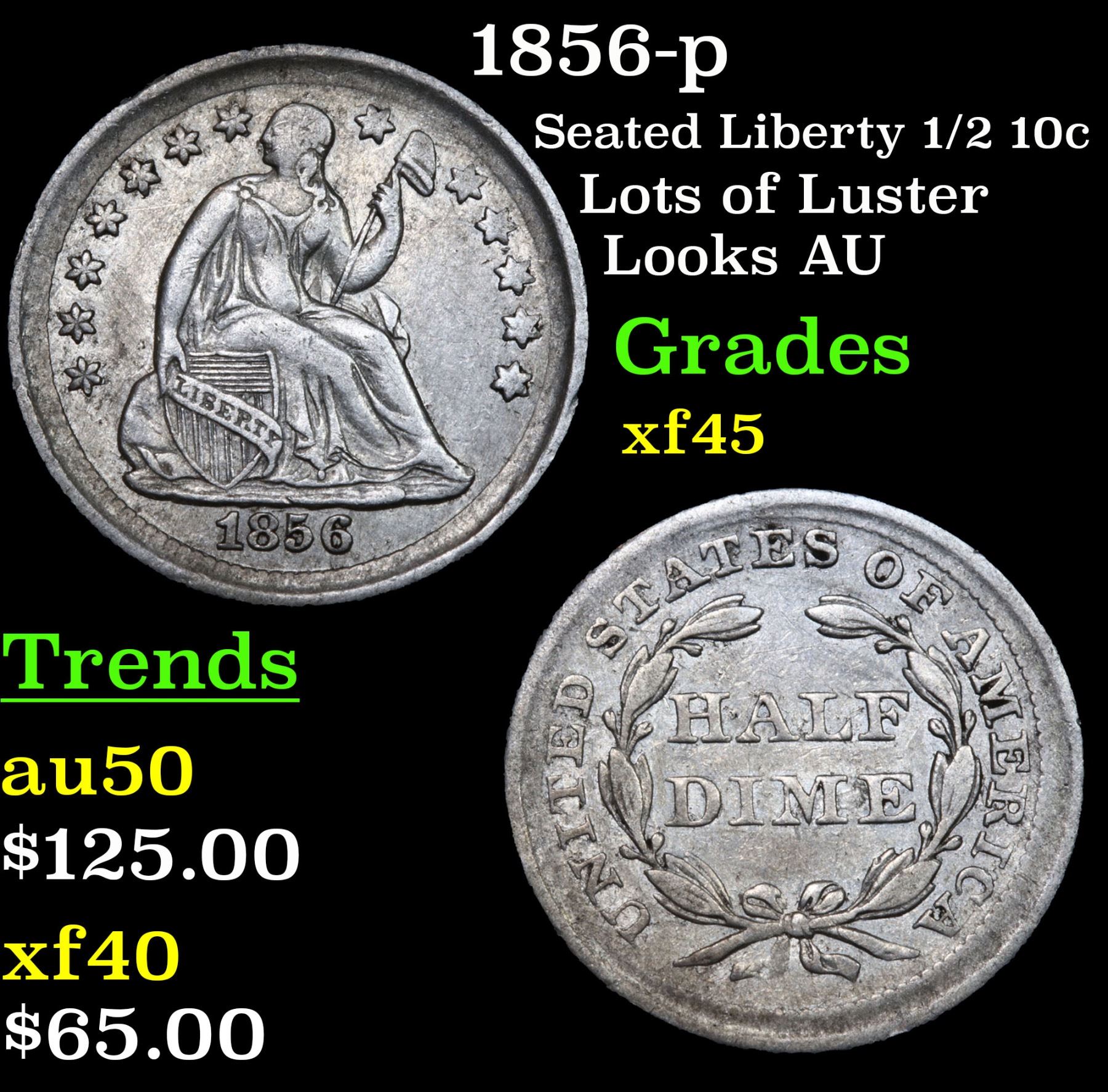 1856-p Lots of Luster Looks AU Seated Liberty Half Dime 1/2 10c Grades xf+.