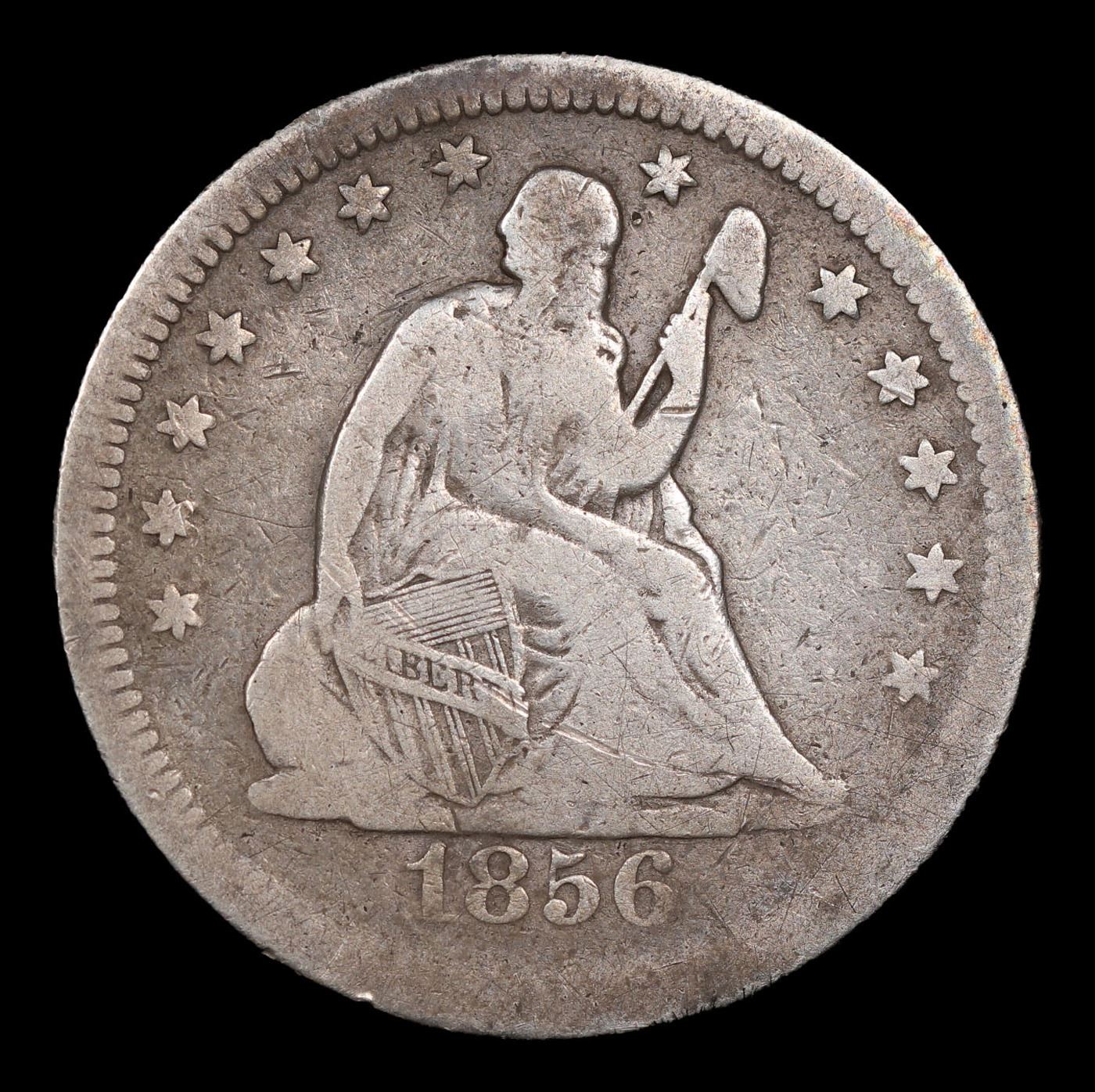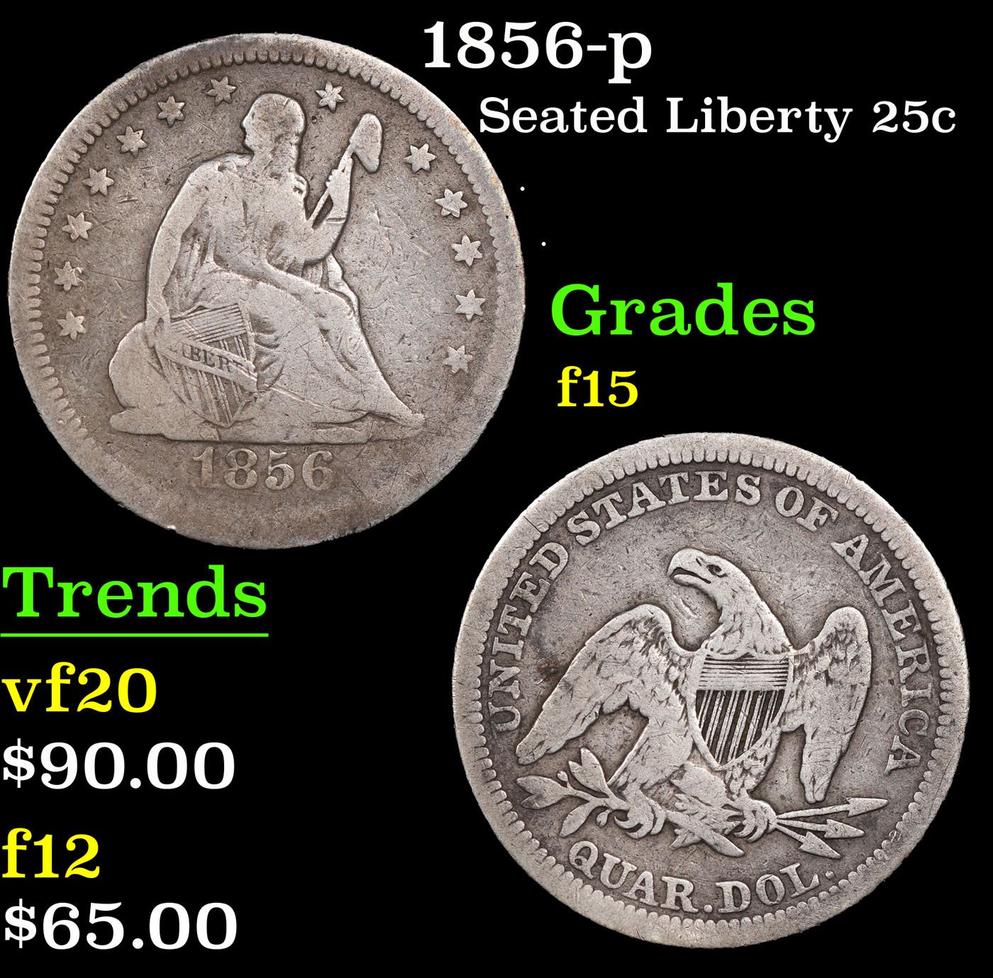 1856-p Seated Liberty Quarter 25c Grades f+.