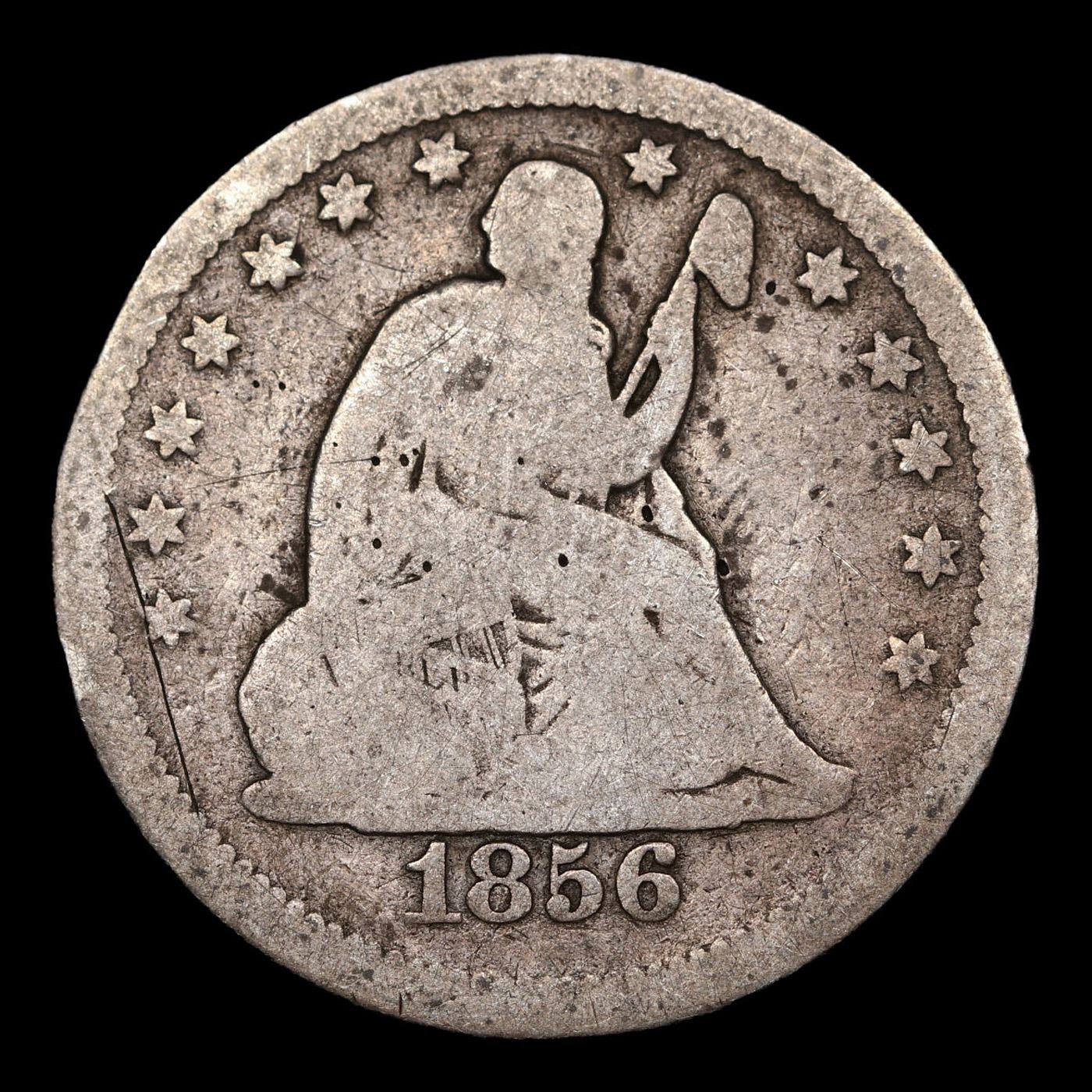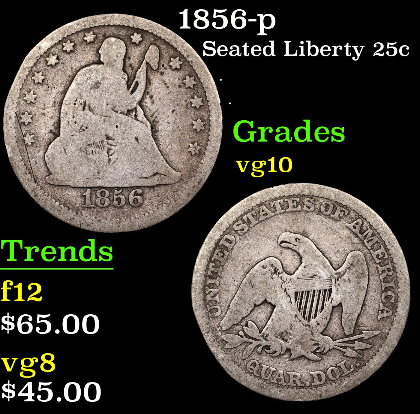 1856-p Seated Liberty Quarter 25c Grades vg+.