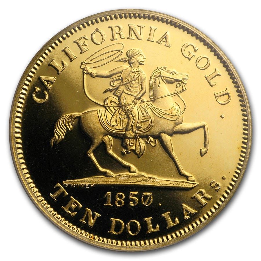 1857/0 $10 49er Horseman .887 Fine Cal Gold PCGS