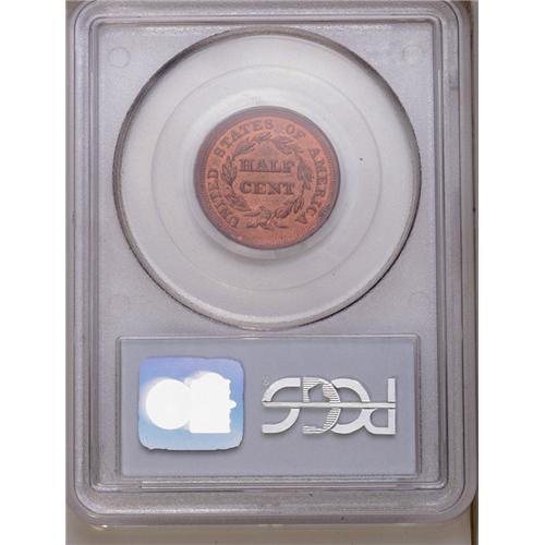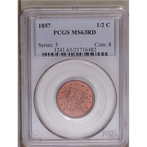 1857 1/2 C MS63 Red PCGS. C-1, B-1, R.2. A sharply str