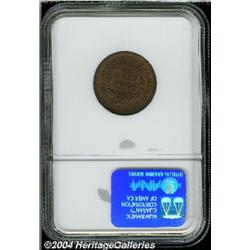 <B>1857<1/2 C> MS63 Red and Brown NGC.</B></I> B-1, C-1, R.2. A suitably struck piece that has a hint of carbon at 7 o'clock and only a couple of unimportant marks. A scarcer date, and the final year of the denomination. <BR><BR><B>Important notice:</B> Heritage usually auctions material at the rate of 200-250 lots per hour. On some occasions eBay Live bid software or the Internet may not be able to keep up with the pace of the auction. We recommend placing a realistic absentee bid now as insurance to avoid disappointment. Occasionally the auctioneer may eliminate or reject an eBay Live bid, and the auctioneer may also reopen a lot after the close of the eBay live bidding (usually because we missed an audience bid), and may reject your bid even if it shows you as the winning bidder. By bidding via eBay Live, you agree that Heritage may award the lot to another bidder at its sole discretion under the circumstances described above or any other reasonable circumstances. Since eBay bids are not shown to us until we open the lot on the floor, we treat those bids just like floor bids. In most cases the floor responds before the eBay bid is presented to us, due to Internet lag time, so for consistency we have made it a policy that floor bids are always considered first over tie eBay live bids. Also please note that all Heritage lots purchased through eBay Live carry a 20% Buyer's Premium. Please make sure you read the Terms and Conditions before you bid.