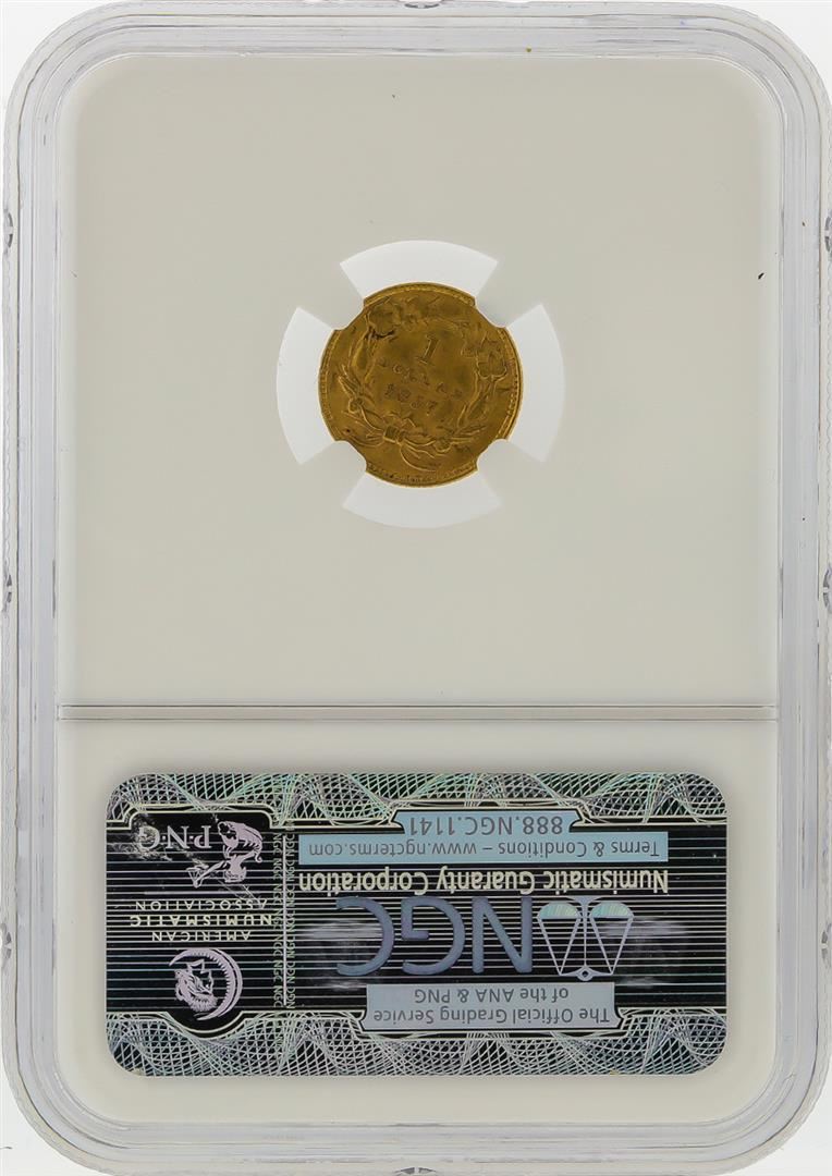 One 1857 $1 Indian Princess Head Gold Coin NGC Graded MS62. NGC Certified.