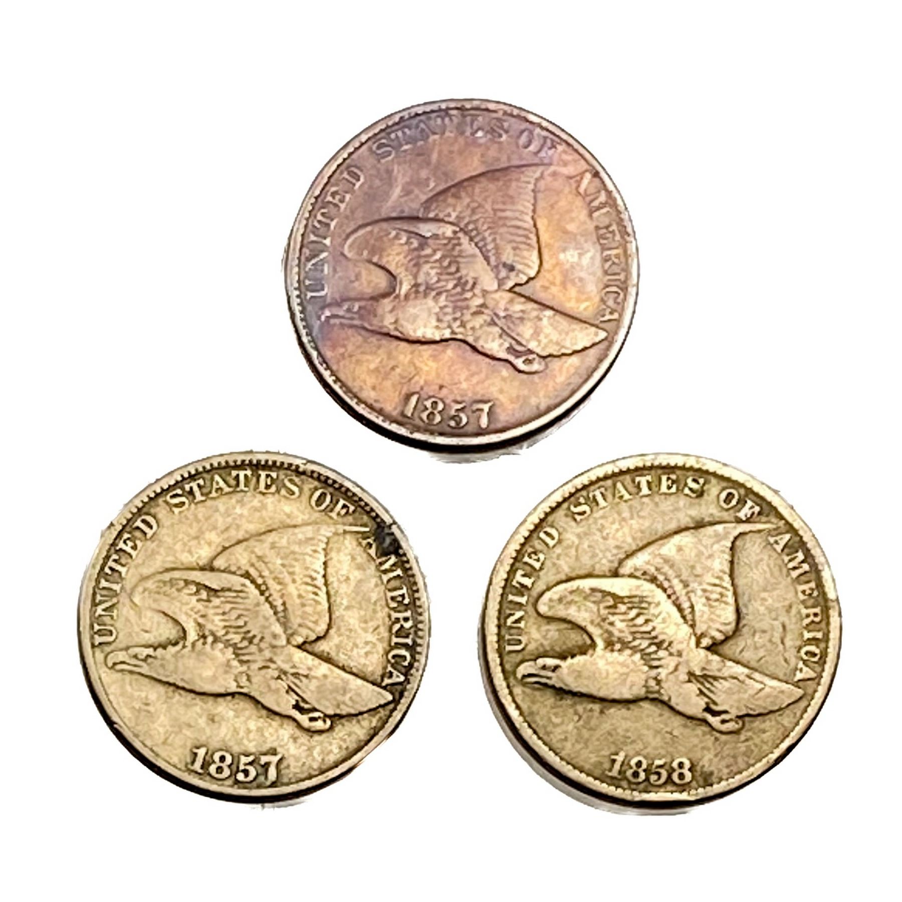1857-1858 Flying Eagle Cent Lot [3 Coins] Fine
