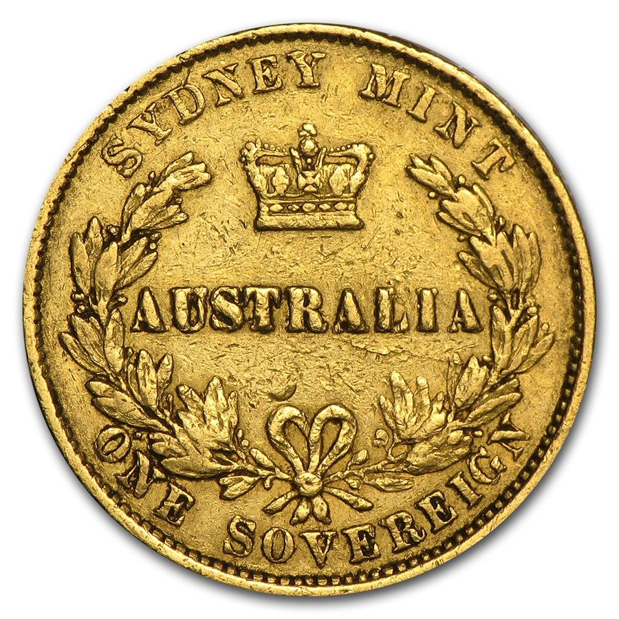 1857-1870 Australia Gold Sovereign Victoria Sydney Mint Avg Circ