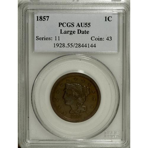 1857 1C Large Date AU55 PCGS. PCGS Population (26/