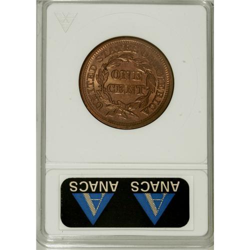 1857 1C Large Date Brown--Recolored--ANACS. MS60 Detai