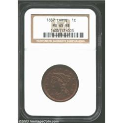1857 1C Large Date MS65 Red and Brown NGC. This final-year large Cent was produced to the extent of.