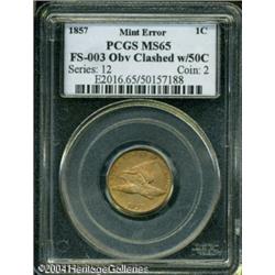 1857 1C MS 64 Obverse Clashed PCGS. FS-003, S-9. T 1857 1C MS 64 Obverse Clashed PCGS.