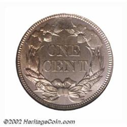 1857 1C MS63 ANACS. FS-003. FND-003. S-9. This is one of the so-called "strange occurrences" coins that came out of the Mint in 1857, and it is the first one we have seen in years. The obverse is die clashed with the obverse of a Seated Liberty Half! The heaviest part of the clash is through the word AMERICA but portions of the Half Dollar design can be made out elsewhere in the fields. Most believe that young Theodore Eckfeldt was responsible for this and several other mysterious die clashings on 1857 Cents. The surfaces are bright and lustrous with a slight bit of golden-reddish patina on each side of the otherwise bright "white" surfaces. Sharply struck on the obverse (less so on the reverse) with a distinctive spot below the eagle's breast. Important notice: We expect to be auctioning lots at the rate of 200-250 per hour. Sometimes eBay Premier live bid software cannot keep up with that pace, so we strongly recommend that you place a realistic proxy bid now as insurance to avoid disappointment. Also please note that all Heritage/CAA lots purchased through eBay Premier carry a 20% Buyer's Premium. Please make sure you read the Terms and Conditions.