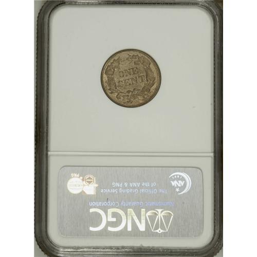 <B>1857 1C MS64 NGC.</B></I> This lustrous and unabraded straw-gold near-Gem is only limited in grade by a few distributed flyspecks. Flying Eagle cents were struck for circulation only in 1857 and 1858.<BR><BR><b>Shipping:</b> Coin/Currency (<a target="_blank" href="http://www.heritageauctions.com/common/shipping.php">view shipping information</a>)