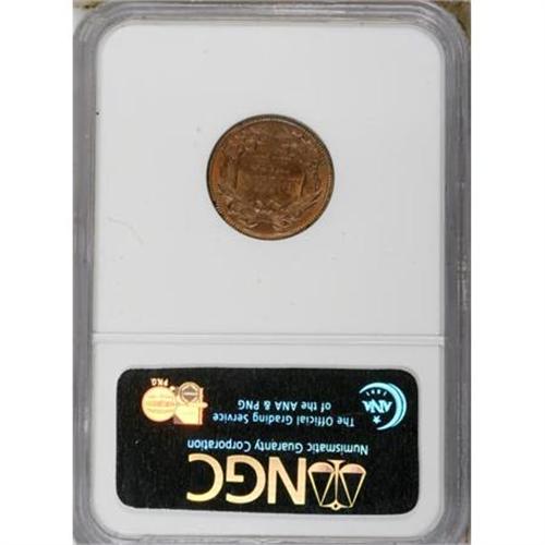 <B>1857 1C MS64 NGC.</B></I> This orange-red near-Gem is sharply struck, since only the lower leaf cotton leaf shows any signs of weakness. Nearly free from contact, and only minor gray freckles on the upper reverse field stand in the way of an even higher grade.<BR><BR><b>Shipping:</b> Coins & Currency (<a target="_blank" href="http://www.heritageauctions.com/common/shipping.php">view shipping information</a>)