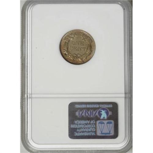 <B>1857 1C MS64 NGC.</B></I> Eagle Eye Photo Seal, card not included. Orange-red and yellow-gold toning adorns this satiny and precisely struck near-Gem. The eagle's breast has a hint of a retained lamination. Struck from boldly clashed dies.<BR><I>From The Madison Collection.</B></I><BR><BR><B>Coin Engraver:</B> James B. Longacre<BR><BR><b>Shipping:</b> Coins & Currency (<a target="_blank" href="http://www.heritageauctions.com/common/shipping.php">view shipping information</a>)