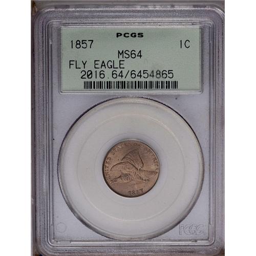 <B>1857<1C> MS64 PCGS.</B></I> A lustrous golden-brown near-Gem. Generally sharply struck, and only a single faint mark is found beneath the T in CENT. A pair of small spots are on the upper right wreath. Certified in a green label holder.