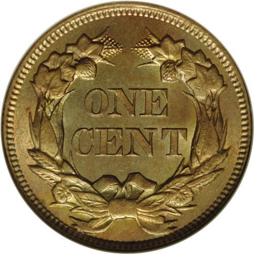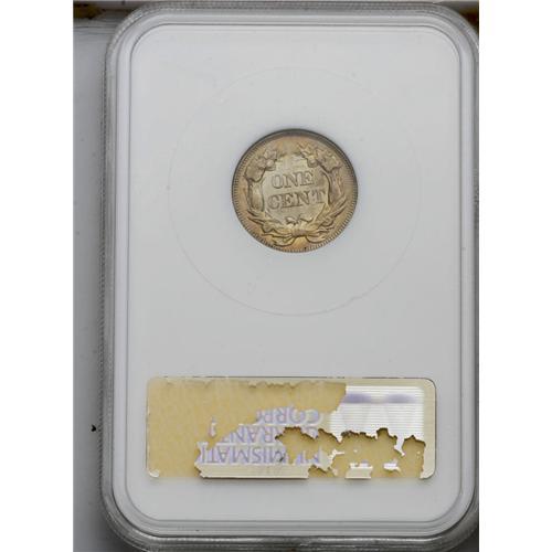 1857 1C MS65 NGC. Beautiful lime-green, peach, and gol 1857