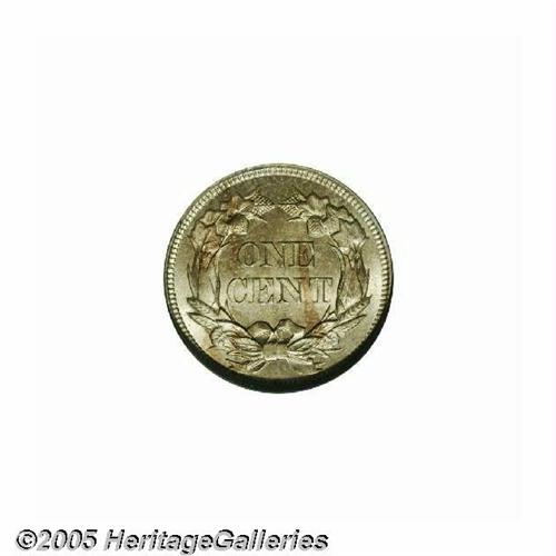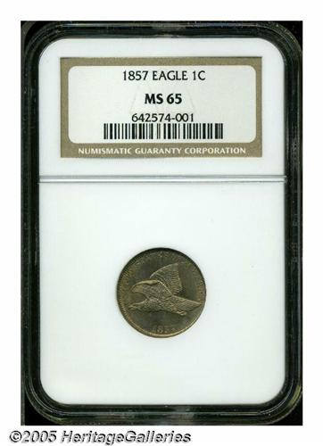 1857 1C MS65 NGC. Light golden-brown in color, th
