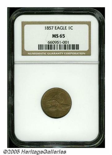 1857 1C MS65 NGC. The obverse of this satiny, who