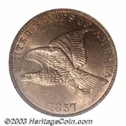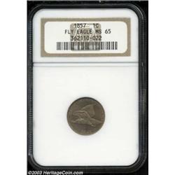 <table><tr><td><TABLE cellSpacing=0 cellPadding=0 width="100%" bgColor=#000000 border=0><TBODY> <TR><TD width="100%"><TABLE cellSpacing=1 cellPadding=3 width="100%" border=0><TBODY><TR><TD width="100%" bgColor=#79735c><FONT face=arial color=#ffffff size=3><B>Description</B> </FONT></TD></TR><TR><TD width="100%" bgColor=#ffffff><FONT face=arial size=2><B>1857 1C MS65 NGC.</B></I> Sharply struck, except for a couple of feathers in the eagle's tail, and showing bright rose undertones beneath the predominant tan patina that covers both sides. Some subtle reddish accents also serve to enhance this Gem's visual appeal. A noticeable die chip (as made) is seen near the top of the eagle's right wing, and does not appear to be documented in the Snow reference material. No singularly distracting abrasions are in evidence on the impressively preserved surfaces. An excellent example of this popular, short-lived type. </FONT></TD></TR></TBODY></TABLE></TD></TR></TBODY></TABLE><BR><A name=PricesRealized></A><TABLE cellSpacing=0 cellPadding=0 width="100%" bgColor=#000000 border=0><TBODY><TR><TD width="100%"><TABLE cellSpacing=1 cellPadding=3 width="100%" border=0><TBODY><TR><TD width="100%" bgColor=#79735c><A name=PR><FONT face=arial color=#ffffff size=3><B>Previous Prices from Heritage Auctions</B> </FONT></A></TD></TR><TR><TD bgColor=#f6f6ed><TABLE cellSpacing=0 cellPadding=0 width="100%" border=1><TBODY><TR><TD align=middle width="33%"><B>Date</B></TD><TD align=middle width="33%"><B>Service</B></TD><TD align=middle width="33%"><B>Price</B></TD></TR><TR bgColor=whitesmoke><TD width="33%"><B>04/08/2003</B></TD><TD width="33%">PCGS</TD><TD width="33%">$2,760.00</TD></TR><TR bgColor=whitesmoke><TD width="33%"><B>10/22/2002</B></TD><TD width="33%">NGC</TD><TD width="33%">$2,300.00</TD></TR><TR bgColor=whitesmoke><TD width="33%"><B>03/26/2002</B></TD><TD width="33%">NGC</TD><TD width="33%">$2,760.00</TD></TR><TR bgColor=whitesmoke><TD width="33%"><B>07/29/2003</B></TD><TD width="33%">PCGS</TD><TD width="33%">$3,450.00</TD></TR><TR bgColor=whitesmoke><TD width="33%"><B>07/29/2003</B></TD><TD width="33%">PCGS</TD><TD width="33%">$2,530.00</TD></TR><TR bgColor=whitesmoke><TD width="33%"><B>03/01/2003</B></TD><TD width="33%">NGC</TD><TD width="33%">$2,300.00</TD></TR><TR bgColor=whitesmoke><TD width="33%"><B>03/01/2003</B></TD><TD width="33%">PCGS</TD><TD width="33%">$1,437.50</TD></TR><TR bgColor=whitesmoke><TD width="33%"><B>09/28/2002</B></TD><TD width="33%">NGC</TD><TD width="33%">$2,300.00</TD></TR><TR bgColor=whitesmoke><TD width="33%"><B>09/28/2002</B></TD><TD width="33%">PCGS</TD><TD width="33%">$3,105.00</TD></TR><TR bgColor=whitesmoke><TD width="33%"><B>06/08/2002</B></TD><TD width="33%">PCGS</TD><TD width="33%">$3,450.00</TD></TR><TR bgColor=whitesmoke><TD width="33%"><B>06/08/2002</B></TD><TD width="33%">PCGS</TD><TD width="33%">$3,450.00</TD></TR><TR bgColor=whitesmoke><TD width="33%"><B>01/12/2002</B></TD><TD width="33%">PCGS</TD><TD width="33%">$3,795.00</TD></TR><TR bgColor=whitesmoke><TD width="33%"><B>05/31/2001</B></TD><TD width="33%">PCGS</TD><TD width="33%">$3,450.00</TD></TR><TR bgColor=whitesmoke><TD width="33%"><B>02/24/2001</B></TD><TD width="33%">NGC</TD><TD width="33%">$1,897.50</TD></TR><TR bgColor=whitesmoke><TD width="33%"><B>11/17/2000</B></TD><TD width="33%">NGC</TD><TD width="33%">$2,817.50</TD></TR><TR bgColor=whitesmoke><TD width="33%"><B>10/06/2000</B></TD><TD width="33%">PCGS</TD><TD width="33%">$2,817.50</TD></TR><TR bgColor=whitesmoke><TD width="33%"><B>02/11/2000</B></TD><TD width="33%">NGC</TD><TD width="33%">$4,600.00</TD></TR><TR bgColor=whitesmoke><TD width="33%"><B>10/10/1999</B></TD><TD width="33%">NGC</TD><TD width="33%">$1,650.25</TD></TR><TR bgColor=whitesmoke><TD width="33%"><B>08/13/1999</B></TD><TD width="33%">NGC</TD><TD width="33%">$2,415.00</TD></TR><TR bgColor=whitesmoke><TD width="33%"><B>06/06/1998</B></TD><TD width="33%">PCGS</TD><TD width="33%">$4,025.00</TD></TR><TR bgColor=whitesmoke><TD width="33%"><B>08/02/1997</B></TD><TD width="33%">NGC</TD><TD width="33%">$2,760.00</TD></TR><TR bgColor=whitesmoke><TD width="33%"><B>04/11/1997</B></TD><TD width="33%">NGC</TD><TD width="33%">$1,320.00</TD></TR><TR bgColor=whitesmoke><TD width="33%"><B>08/17/1996</B></TD><TD width="33%">PCGS</TD><TD width="33%">$1,650.00</TD></TR><TR bgColor=whitesmoke><TD width="33%"><B>03/16/1996</B></TD><TD width="33%">NGC</TD><TD width="33%">$1,375.00</TD></TR><TR bgColor=whitesmoke><TD width="33%"><B>10/07/1995</B></TD><TD width="33%">NGC</TD><TD width="33%">$1,320.00</TD></TR><TR bgColor=whitesmoke><TD width="33%"><B>07/26/1994</B></TD><TD width="33%">NGC</TD><TD width="33%">$1,430.00</TD></TR><TR bgColor=whitesmoke><TD width="33%"><B>09/10/1993</B></TD><TD width="33%">NGC</TD><TD width="33%">$1,540.00</TD></TR><TR bgColor=whitesmoke><TD width="33%"><B>05/01/1996</B></TD><TD width="33%">NGC</TD><TD width="33%">$1,320.00</TD></TR><TR bgColor=whitesmoke><TD width="33%"><B>02/01/1999</B></TD><TD width="33%">NGC</TD><TD width="33%">$1,955.00</TD></TR><TR bgColor=whitesmoke><TD width="33%"><B>01/01/1999</B></TD><TD width="33%">NGC</TD><TD width="33%">$2,243.00</TD></TR><TR bgColor=whitesmoke><TD width="33%"><B>05/01/1999</B></TD><TD width="33%">NGC</TD><TD width="33%">$3,450.00</TD></TR><TR bgColor=whitesmoke><TD width="33%"><B>07/01/1999</B></TD><TD width="33%">NGC</TD><TD width="33%">$2,300.00</TD></TR><TR bgColor=whitesmoke><TD width="33%"><B>01/01/2000</B></TD><TD width="33%">NGC</TD><TD width="33%">$1,897.00</TD></TR><TR bgColor=whitesmoke><TD width="33%"><B>11/01/1999</B></TD><TD width="33%">PCGS</TD><TD width="33%">$3,000.00</TD></TR><TR bgColor=whitesmoke><TD width="33%"><B>03/01/1997</B></TD><TD width="33%">PCGS</TD><TD width="33%">$1,760.00</TD></TR><TR bgColor=whitesmoke><TD width="33%"><B>03/01/1998</B></TD><TD width="33%">PCGS</TD><TD width="33%">$1,980.00</TD></TR><TR bgColor=whitesmoke><TD width="33%"><B>02/01/2001</B></TD><TD width="33%">PCGS</TD><TD width="33%">$