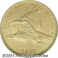 <table><tr><td><TABLE cellSpacing=0 cellPadding=0 width="100%" bgColor=#000000 border=0><TBODY> <TR><TD width="100%"><TABLE cellSpacing=1 cellPadding=3 width="100%" border=0><TBODY><TR><TD width="100%" bgColor=#79735c><FONT face=arial color=#ffffff size=3><B>Description</B> </FONT></TD></TR><TR><TD width="100%" bgColor=#ffffff><FONT face=arial size=2><B>1857 1C MS65 NGC.</B></I> Beautiful golden-tan color blankets both sides, with a tiny bit of russet on this lovely Gem. Flying Eagle cents are a perennial favorite with collectors, combining both beauty of design with the desirability of a short-lived type. Fully struck and impressively preserved, the only noticeable mark is a small one that bisects the lower crossbar of the E in CENT.<BR><I>From the Fred Miller Collection.</B></I> </FONT></TD></TR></TBODY></TABLE></TD></TR></TBODY></TABLE><BR><A name=PricesRealized></A><TABLE cellSpacing=0 cellPadding=0 width="100%" bgColor=#000000 border=0><TBODY><TR><TD width="100%"><TABLE cellSpacing=1 cellPadding=3 width="100%" border=0><TBODY><TR><TD width="100%" bgColor=#79735c><A name=PR><FONT face=arial color=#ffffff size=3><B>Previous Prices from Heritage Auctions</B> </FONT></A></TD></TR><TR><TD bgColor=#f6f6ed><TABLE cellSpacing=0 cellPadding=0 width="100%" border=1><TBODY><TR><TD align=middle width="33%"><B>Date</B></TD><TD align=middle width="33%"><B>Service</B></TD><TD align=middle width="33%"><B>Price</B></TD></TR><TR bgColor=whitesmoke><TD width="33%"><B>11/11/2003</B></TD><TD width="33%">NGC</TD><TD width="33%">$2,357.50</TD></TR><TR bgColor=whitesmoke><TD width="33%"><B>11/11/2003</B></TD><TD width="33%">NGC</TD><TD width="33%">$2,357.50</TD></TR><TR bgColor=whitesmoke><TD width="33%"><B>06/03/2003</B></TD><TD width="33%">PCGS</TD><TD width="33%">$2,760.00</TD></TR><TR bgColor=whitesmoke><TD width="33%"><B>04/08/2003</B></TD><TD width="33%">PCGS</TD><TD width="33%">$2,760.00</TD></TR><TR bgColor=whitesmoke><TD width="33%"><B>04/08/2003</B></TD><TD width="33%">PCGS</TD><TD width="33%">$2,760.00</TD></TR><TR bgColor=whitesmoke><TD width="33%"><B>12/31/2002</B></TD><TD width="33%">NGC</TD><TD width="33%">$2,327.60</TD></TR><TR bgColor=whitesmoke><TD width="33%"><B>10/22/2002</B></TD><TD width="33%">NGC</TD><TD width="33%">$2,300.00</TD></TR><TR bgColor=whitesmoke><TD width="33%"><B>10/22/2002</B></TD><TD width="33%">NGC</TD><TD width="33%">$2,300.00</TD></TR><TR bgColor=whitesmoke><TD width="33%"><B>08/27/2002</B></TD><TD width="33%">NGC</TD><TD width="33%">$2,990.00</TD></TR><TR bgColor=whitesmoke><TD width="33%"><B>03/26/2002</B></TD><TD width="33%">NGC</TD><TD width="33%">$2,760.00</TD></TR><TR bgColor=whitesmoke><TD width="33%"><B>03/26/2002</B></TD><TD width="33%">NGC</TD><TD width="33%">$2,760.00</TD></TR><TR bgColor=whitesmoke><TD width="33%"><B>01/15/2002</B></TD><TD width="33%">NGC</TD><TD width="33%">$2,415.00</TD></TR><TR bgColor=whitesmoke><TD width="33%"><B>01/07/2004</B></TD><TD width="33%">PCGS</TD><TD width="33%">$2,875.00</TD></TR><TR bgColor=whitesmoke><TD width="33%"><B>01/07/2004</B></TD><TD width="33%">PCGS</TD><TD width="33%">$2,875.00</TD></TR><TR bgColor=whitesmoke><TD width="33%"><B>01/07/2004</B></TD><TD width="33%">NGC</TD><TD width="33%">$3,450.00</TD></TR><TR bgColor=whitesmoke><TD width="33%"><B>01/07/2004</B></TD><TD width="33%">NGC</TD><TD width="33%">$2,242.50</TD></TR><TR bgColor=whitesmoke><TD width="33%"><B>01/07/2004</B></TD><TD width="33%">NGC</TD><TD width="33%">$2,242.50</TD></TR><TR bgColor=whitesmoke><TD width="33%"><B>01/07/2004</B></TD><TD width="33%">NGC</TD><TD width="33%">$2,530.00</TD></TR><TR bgColor=whitesmoke><TD width="33%"><B>01/07/2004</B></TD><TD width="33%">PCGS</TD><TD width="33%">$2,990.00</TD></TR><TR bgColor=whitesmoke><TD width="33%"><B>01/07/2004</B></TD><TD width="33%">PCGS</TD><TD width="33%">$2,990.00</TD></TR><TR bgColor=whitesmoke><TD width="33%"><B>11/07/2003</B></TD><TD width="33%">NGC</TD><TD width="33%">$2,760.00</TD></TR><TR bgColor=whitesmoke><TD width="33%"><B>07/29/2003</B></TD><TD width="33%">PCGS</TD><TD width="33%">$3,450.00</TD></TR><TR bgColor=whitesmoke><TD width="33%"><B>07/29/2003</B></TD><TD width="33%">PCGS</TD><TD width="33%">$3,450.00</TD></TR><TR bgColor=whitesmoke><TD width="33%"><B>07/29/2003</B></TD><TD width="33%">NGC</TD><TD width="33%">$3,910.00</TD></TR><TR bgColor=whitesmoke><TD width="33%"><B>07/29/2003</B></TD><TD width="33%">PCGS</TD><TD width="33%">$2,530.00</TD></TR><TR bgColor=whitesmoke><TD width="33%"><B>07/29/2003</B></TD><TD width="33%">PCGS</TD><TD width="33%">$2,530.00</TD></TR><TR bgColor=whitesmoke><TD width="33%"><B>05/03/2003</B></TD><TD width="33%">NGC</TD><TD width="33%">$2,760.00</TD></TR><TR bgColor=whitesmoke><TD width="33%"><B>03/01/2003</B></TD><TD width="33%">NGC</TD><TD width="33%">$2,300.00</TD></TR><TR bgColor=whitesmoke><TD width="33%"><B>03/01/2003</B></TD><TD width="33%">NGC</TD><TD width="33%">$2,300.00</TD></TR><TR bgColor=whitesmoke><TD width="33%"><B>03/01/2003</B></TD><TD width="33%">PCGS</TD><TD width="33%">$1,437.50</TD></TR><TR bgColor=whitesmoke><TD width="33%"><B>03/01/2003</B></TD><TD width="33%">PCGS</TD><TD width="33%">$1,437.50</TD></TR><TR bgColor=whitesmoke><TD width="33%"><B>03/01/2003</B></TD><TD width="33%">PCGS</TD><TD width="33%">$1,437.50</TD></TR><TR bgColor=whitesmoke><TD width="33%"><B>01/11/2003</B></TD><TD width="33%">PCGS</TD><TD width="33%">$2,127.50</TD></TR><TR bgColor=whitesmoke><TD width="33%"><B>09/28/2002</B></TD><TD width="33%">NGC</TD><TD width="33%">$2,300.00</TD></TR><TR bgColor=whitesmoke><TD width="33%"><B>09/28/2002</B></TD><TD width="33%">NGC</TD><TD width="33%">$2,300.00</TD></TR><TR bgColor=whitesmoke><TD width="33%"><B>09/28/2002</B></TD><TD width="33%">PCGS</TD><TD width="33%">$2,472.50</TD></TR><TR bgColor=whitesmoke><TD width="33%"><B>09/28/2002</B></TD><TD width="33%">PCGS</TD><TD width="33%">$3,105.00</TD></TR><TR bgColor=whitesmoke><TD width="33%"><B>09/28/2002</B></TD><TD width="33%">PCGS</TD><TD width="33%">$3,10