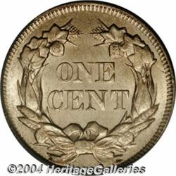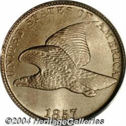 <table><tr><td><TABLE cellSpacing=0 cellPadding=0 width="100%" bgColor=#000000 border=0><TBODY> <TR><TD width="100%"><TABLE cellSpacing=1 cellPadding=3 width="100%" border=0><TBODY><TR><TD width="100%" bgColor=#79735c><FONT face=arial color=#ffffff size=3><B>Description</B> </FONT></TD></TR><TR><TD width="100%" bgColor=#ffffff><FONT face=arial size=2><B>1857 1C MS65 PCGS.</B></I> A light golden-brown piece with impressive surfaces. Although the majority of Flying Eagle Cents exhibit moderate weakness of strike on the eagle's peripheries, the strike on this lustrous Gem is relatively sharp. Only the right edge of the tail feathers, the right maple leaf on the wreath, and the denticles near the date do not have strong definition. </FONT></TD></TR></TBODY></TABLE></TD></TR></TBODY></TABLE><BR><A name=PricesRealized></A><TABLE cellSpacing=0 cellPadding=0 width="100%" bgColor=#000000 border=0><TBODY><TR><TD width="100%"><TABLE cellSpacing=1 cellPadding=3 width="100%" border=0><TBODY><TR><TD width="100%" bgColor=#79735c><A name=PR><FONT face=arial color=#ffffff size=3><B>Previous Prices from Heritage Auctions</B> </FONT></A></TD></TR><TR><TD bgColor=#f6f6ed><TABLE cellSpacing=0 cellPadding=0 width="100%" border=1><TBODY><TR><TD align=middle width="33%"><B>Date</B></TD><TD align=middle width="33%"><B>Service</B></TD><TD align=middle width="33%"><B>Price</B></TD></TR><TR bgColor=whitesmoke><TD width="33%"><B>11/11/2003</B></TD><TD width="33%">NGC</TD><TD width="33%">$2,357.50</TD></TR><TR bgColor=whitesmoke><TD width="33%"><B>11/11/2003</B></TD><TD width="33%">NGC</TD><TD width="33%">$2,357.50</TD></TR><TR bgColor=whitesmoke><TD width="33%"><B>06/03/2003</B></TD><TD width="33%">PCGS</TD><TD width="33%">$2,760.00</TD></TR><TR bgColor=whitesmoke><TD width="33%"><B>04/08/2003</B></TD><TD width="33%">PCGS</TD><TD width="33%">$2,760.00</TD></TR><TR bgColor=whitesmoke><TD width="33%"><B>04/08/2003</B></TD><TD width="33%">PCGS</TD><TD width="33%">$2,760.00</TD></TR><TR bgColor=whitesmoke><TD width="33%"><B>12/31/2002</B></TD><TD width="33%">NGC</TD><TD width="33%">$2,327.60</TD></TR><TR bgColor=whitesmoke><TD width="33%"><B>10/22/2002</B></TD><TD width="33%">NGC</TD><TD width="33%">$2,300.00</TD></TR><TR bgColor=whitesmoke><TD width="33%"><B>10/22/2002</B></TD><TD width="33%">NGC</TD><TD width="33%">$2,300.00</TD></TR><TR bgColor=whitesmoke><TD width="33%"><B>08/27/2002</B></TD><TD width="33%">NGC</TD><TD width="33%">$2,990.00</TD></TR><TR bgColor=whitesmoke><TD width="33%"><B>03/26/2002</B></TD><TD width="33%">NGC</TD><TD width="33%">$2,760.00</TD></TR><TR bgColor=whitesmoke><TD width="33%"><B>03/26/2002</B></TD><TD width="33%">NGC</TD><TD width="33%">$2,760.00</TD></TR><TR bgColor=whitesmoke><TD width="33%"><B>01/15/2002</B></TD><TD width="33%">NGC</TD><TD width="33%">$2,415.00</TD></TR><TR bgColor=whitesmoke><TD width="33%"><B>01/07/2004</B></TD><TD width="33%">PCGS</TD><TD width="33%">$2,875.00</TD></TR><TR bgColor=whitesmoke><TD width="33%"><B>01/07/2004</B></TD><TD width="33%">PCGS</TD><TD width="33%">$2,875.00</TD></TR><TR bgColor=whitesmoke><TD width="33%"><B>01/07/2004</B></TD><TD width="33%">NGC</TD><TD width="33%">$3,450.00</TD></TR><TR bgColor=whitesmoke><TD width="33%"><B>01/07/2004</B></TD><TD width="33%">NGC</TD><TD width="33%">$2,242.50</TD></TR><TR bgColor=whitesmoke><TD width="33%"><B>01/07/2004</B></TD><TD width="33%">NGC</TD><TD width="33%">$2,242.50</TD></TR><TR bgColor=whitesmoke><TD width="33%"><B>01/07/2004</B></TD><TD width="33%">NGC</TD><TD width="33%">$2,530.00</TD></TR><TR bgColor=whitesmoke><TD width="33%"><B>01/07/2004</B></TD><TD width="33%">PCGS</TD><TD width="33%">$2,990.00</TD></TR><TR bgColor=whitesmoke><TD width="33%"><B>01/07/2004</B></TD><TD width="33%">PCGS</TD><TD width="33%">$2,990.00</TD></TR><TR bgColor=whitesmoke><TD width="33%"><B>11/07/2003</B></TD><TD width="33%">NGC</TD><TD width="33%">$2,760.00</TD></TR><TR bgColor=whitesmoke><TD width="33%"><B>07/29/2003</B></TD><TD width="33%">PCGS</TD><TD width="33%">$3,450.00</TD></TR><TR bgColor=whitesmoke><TD width="33%"><B>07/29/2003</B></TD><TD width="33%">PCGS</TD><TD width="33%">$3,450.00</TD></TR><TR bgColor=whitesmoke><TD width="33%"><B>07/29/2003</B></TD><TD width="33%">NGC</TD><TD width="33%">$3,910.00</TD></TR><TR bgColor=whitesmoke><TD width="33%"><B>07/29/2003</B></TD><TD width="33%">PCGS</TD><TD width="33%">$2,530.00</TD></TR><TR bgColor=whitesmoke><TD width="33%"><B>07/29/2003</B></TD><TD width="33%">PCGS</TD><TD width="33%">$2,530.00</TD></TR><TR bgColor=whitesmoke><TD width="33%"><B>05/03/2003</B></TD><TD width="33%">NGC</TD><TD width="33%">$2,760.00</TD></TR><TR bgColor=whitesmoke><TD width="33%"><B>03/01/2003</B></TD><TD width="33%">NGC</TD><TD width="33%">$2,300.00</TD></TR><TR bgColor=whitesmoke><TD width="33%"><B>03/01/2003</B></TD><TD width="33%">NGC</TD><TD width="33%">$2,300.00</TD></TR><TR bgColor=whitesmoke><TD width="33%"><B>03/01/2003</B></TD><TD width="33%">PCGS</TD><TD width="33%">$1,437.50</TD></TR><TR bgColor=whitesmoke><TD width="33%"><B>03/01/2003</B></TD><TD width="33%">PCGS</TD><TD width="33%">$1,437.50</TD></TR><TR bgColor=whitesmoke><TD width="33%"><B>03/01/2003</B></TD><TD width="33%">PCGS</TD><TD width="33%">$1,437.50</TD></TR><TR bgColor=whitesmoke><TD width="33%"><B>01/11/2003</B></TD><TD width="33%">PCGS</TD><TD width="33%">$2,127.50</TD></TR><TR bgColor=whitesmoke><TD width="33%"><B>09/28/2002</B></TD><TD width="33%">NGC</TD><TD width="33%">$2,300.00</TD></TR><TR bgColor=whitesmoke><TD width="33%"><B>09/28/2002</B></TD><TD width="33%">NGC</TD><TD width="33%">$2,300.00</TD></TR><TR bgColor=whitesmoke><TD width="33%"><B>09/28/2002</B></TD><TD width="33%">PCGS</TD><TD width="33%">$2,472.50</TD></TR><TR bgColor=whitesmoke><TD width="33%"><B>09/28/2002</B></TD><TD width="33%">PCGS</TD><TD width="33%">$3,105.00</TD></TR><TR bgColor=whitesmoke><TD width="33%"><B>09/28/2002</B></TD><TD width="33%">PCGS</TD><TD width="33%">$3,105.00</TD></TR><TR bgColor=whitesmoke><TD width="33%"><