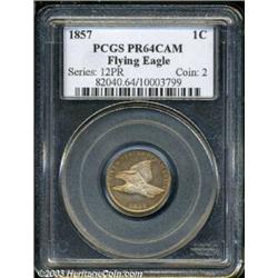 <table><tr><td><TABLE cellSpacing=0 cellPadding=0 width="100%" bgColor=#000000 border=0><TBODY> <TR><TD width="100%"><TABLE cellSpacing=1 cellPadding=3 width="100%" border=0><TBODY><TR><TD width="100%" bgColor=#79735c><FONT face=arial color=#ffffff size=3><B>Description</B> </FONT></TD></TR><TR><TD width="100%" bgColor=#ffffff><FONT face=arial size=2><B>1857 1C PR64 Cameo PCGS.</B></I> This is a rare issue, and the present specimen is of further importance because it is only the second proof 1857 Flying Eagle Cent to receive a Cameo designation at PCGS (9/03). We auctioned the first, a Proof 63 Cameo, about a year ago. The mirrored fields on this coin are about as deep and vibrant as one is likely to see on a specimen striking of this type. Furthermore, the devices are fully defined and the denticles crisp--features that further confirm this coin's status as a proof. There are a few wispy hairlines and scattered contact marks on both sides along with remnants of a fingerprint and some carbon spotting on the reverse. A scintillating, reddish-gold representative with suggestions of champagne and gray tinting on the reverse. </FONT></TD></TR></TBODY></TABLE></TD></TR></TBODY></TABLE><BR><A name=PricesRealized></A><TABLE cellSpacing=0 cellPadding=0 width="100%" bgColor=#000000 border=0><TBODY><TR><TD width="100%"><TABLE cellSpacing=1 cellPadding=3 width="100%" border=0><TBODY><TR><TD width="100%" bgColor=#79735c><A name=PR><FONT face=arial color=#ffffff size=3><B>Previous Prices from Heritage Auctions</B> </FONT></A></TD></TR><TR><TD bgColor=#f6f6ed>No Prior Data Recorded </TD></TR><TR><TD bgColor=#ffffff><FONT face=arial size=1 ?>PLEASE NOTE: All prices realized reflect the final hammer price PLUS the buyer's premium in auctions that charge a buyer's premium. Each item has a notation at the top of the listing indicating whether that lot included a buyer's premium. Example: A item that sells with a final hammer price of $100 and a 20% buyer's premium will display with a price realized of $120. All information listed is intended to be as accurate as possible, but errors are possible. Please use this guide carefully and inform us of any inaccuracies. </FONT></TD></TR></TBODY></TABLE></TD></TR></TBODY></TABLE><BR><TABLE cellSpacing=0 cellPadding=0 width="100%" bgColor=#000000 border=0><TBODY><TR><TD width="100%"><TABLE cellSpacing=1 cellPadding=3 width="100%" border=0><TBODY><TR><TD width="100%" bgColor=#79735c colSpan=6><FONT face=arial color=#ffffff size=3><B>Price Guide*</B> </FONT></TD></TR><TR bgColor=#f6f6ed><TD align=middle><B>Grade</B> </TD><TD align=middle><B>Coin World<BR>(Trends)</B> </TD><TD align=middle><B>Numismedia<BR>Retail</B> </TD><TD align=middle><B>Numismedia<BR>Wholesale</B> </TD><TD align=middle><B>Coin<BR>Universe</B> </TD><TD align=middle><B>Heritage<BR>Value Index</B> </TD></TR><TR bgColor=#ffffff><TD align=middle>63</TD><TD align=right>---</TD><TD align=right>---</TD><TD align=right>---</TD><TD align=right>---</TD><TD align=right>---</TD></TR><TR style="FONT-WEIGHT: bold" bgColor=#cccfdd><TD align=middle>64</TD><TD align=right>---</TD><TD align=right>---</TD><TD align=right>---</TD><TD align=right>---</TD><TD align=right>---</TD></TR><TR bgColor=#ffffff><TD align=middle>65</TD><TD align=right>---</TD><TD align=right>---</TD><TD align=right>---</TD><TD align=right>---</TD><TD align=right>---</TD></TR><TR bgColor=#ffffff><TD colSpan=6><FONT size=1>*All information listed is intended to be as accurate as possible, but errors are possible. No item may be returned or refused based on this information which is provided as a service to our customers. You should contact each pricing source directly to determine the accuracy of this information. </FONT></TD></TR></TBODY></TABLE></TD></TR></TBODY></TABLE><BR><TABLE cellSpacing=0 cellPadding=0 width="100%" bgColor=#000000 border=0><TBODY><TR><TD width="100%"><TABLE cellSpacing=1 cellPadding=3 width="100%" border=0><TBODY><TR><TD width="100%" bgColor=#79735c><FONT face=arial color=#ffffff size=3><B>Population Guide</B> </FONT></TD></TR><TR bgColor=#ffffff><TD align=middle><!-- Begin Output of Population Grid--><TABLE cellSpacing=0 cellPadding=0 width="100%" border=0><TBODY><TR><TD vAlign=center><TABLE cellSpacing=0 width="100%" border=1 cellsadding="3"><TBODY><TR><TD vAlign=center><TABLE cellSpacing=0 cellPadding=3 width="100%" border=1><TBODY><TR><TD vAlign=center align=middle bgColor=#f0f1e8 colSpan=2 <CENTER><FONT face=Arial size=2><B>PCGS Pop </B></FONT><CENTER></CENTER></TD><TD vAlign=center align=middle bgColor=#f0f1e8 colSpan=2><CENTER><FONT face=Arial size=2><B>NGC Pop</B></CENTER></FONT></TD></TR><TR><TD vAlign=center><FONT face=Arial size=2>(64)</FONT> </TD><TD vAlign=center align=right><FONT face=Arial size=2>2</FONT> </TD><TD vAlign=center><FONT face=Arial size=2>(64)</FONT> </TD><TD vAlign=center align=right><FONT face=Arial size=2>0</FONT> </TD></TR><TR><TD vAlign=center><FONT face=Arial size=2>(>64)</FONT> </TD><TD vAlign=center align=right><FONT face=Arial size=2>1</FONT> </TD><TD vAlign=center><FONT face=Arial size=2>(>64)</FONT> </TD><TD vAlign=center align=right><FONT face=Arial size=2>0</FONT> </TD></TR></TBODY></TABLE></TD></TR></TBODY></TABLE></TD></TR></TBODY></TABLE><!-- End Output of Population Grid--></TD></TR></TBODY></TABLE></TD></TR></TBODY></TABLE><BR><TABLE cellSpacing=0 cellPadding=0 width="100%" bgColor=#000000 border=0><TBODY><TR> Important notice: Heritage usually auctions material at the rate of 200-250 lots per hour. On some occasions eBay Live bid software or the Internet may not be able to keep up with the pace of the auction. We recommend placing a realistic absentee bid now as insurance to avoid disappointment. Occasionally the auctioneer may eliminate or reject an eBay Live bid, and the auctioneer may also reopen a lot after the close of the eBay live bidding (usually because we missed an audience bid), and may reject your bid even if it shows you as the winning bidder. By bidding via eBay