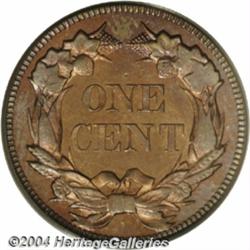 <table><tr><td><table><tr><td>1857 1C PR64 PCGS. Snow-PR3. DDO 4-O-I. Rick Snow states that only approximately 50 proof 1857 Flying Eagle Cents were minted, a number far less than that of the famous 1856 proof issue. Despite this miniscule quantity, three separate die pairs are known. PR3 is known for a diagonal die line (as produced) through the N in UNITED and a lightly doubled obverse legend. Business strikes were also made from these dies, listed as Snow-18, but the mirrored fields and the needle-sharp strike confirm the proof status of this well preserved near-Gem. Since there are no carbon spots or handling marks, tiny mint-made lintmarks at 11 o'clock on the reverse, near the E in ONE, and to the east of the date will perform pedigree duty for this rare proof issue. Encapsulated in a green label PCGS holder. Population: 17 in 64, 11 finer (2/04). <BR><BR><B>Important notice:</B> Heritage usually auctions material at the rate of 200-250 lots per hour. On some occasions eBay Live bid software or the Internet may not be able to keep up with the pace of the auction. We recommend placing a realistic absentee bid now as insurance to avoid disappointment. Occasionally the auctioneer may eliminate or reject an eBay Live bid, and the auctioneer may also reopen a lot after the close of the eBay live bidding (usually because we missed an audience bid), and may reject your bid even if it shows you as the winning bidder. By bidding via eBay Live, you agree that Heritage may award the lot to another bidder at its sole discretion under the circumstances described above or any other reasonable circumstances. Since eBay bids are not shown to us until we open the lot on the floor, we treat those bids just like floor bids. In most cases the floor responds before the eBay bid is presented to us, due to Internet lag time, so for consistency we have made it a policy that floor bids are always considered first over tie eBay live bids. Also please note that all Heritage lots purchased through eBay Live carry a 20% Buyer's Premium. Please make sure you read the Terms and Conditions before you bid. <BR><BR><B>IMPORTANT ANNOUNCEMENT ABOUT RESERVES:</B> Heritage now divulges all reserves on its web site 7 days before every auction. If you want to know whether the reserve on this lot has been met, and if not, what the reserve amount is, please visit this lot page on the HeritageCoin.com web site, or email: bid@HeritageGalleries.com </span></font></td></tr></table></td></tr></table>