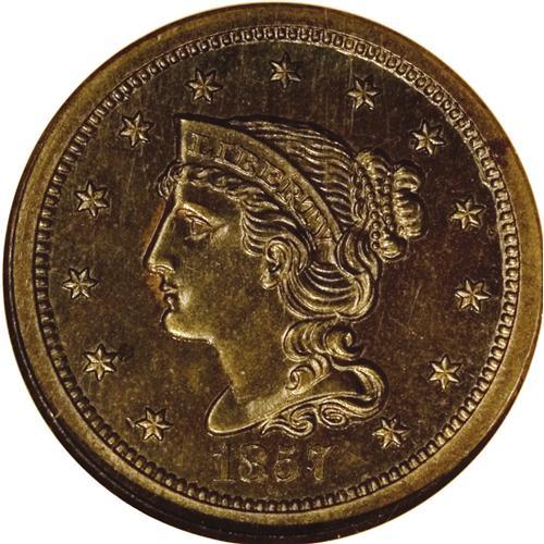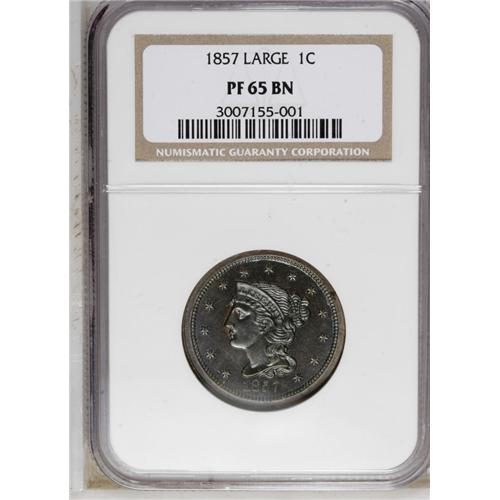 1857 1C Small Date PR65 Brown NGC. N-5, High R.5. Deep