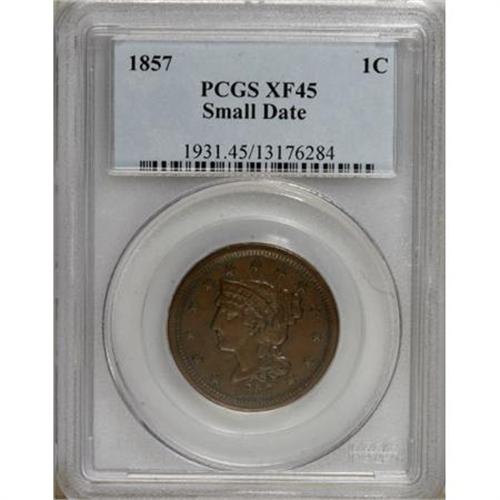 1857 1C Small Date XF45 PCGS