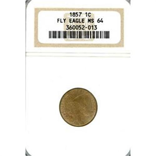 Lustrous with natural toning. The Act of February 21, 1857 provided for the coinage of a new copper-nickel small cent. It also called for Spanish and Mexican coins and old copper cents and half cents in circulation to be called in and exchanged for U.S. silver coins and the new cents. The flying eagle design was by the mint's chief engraver, James B. Longacre.