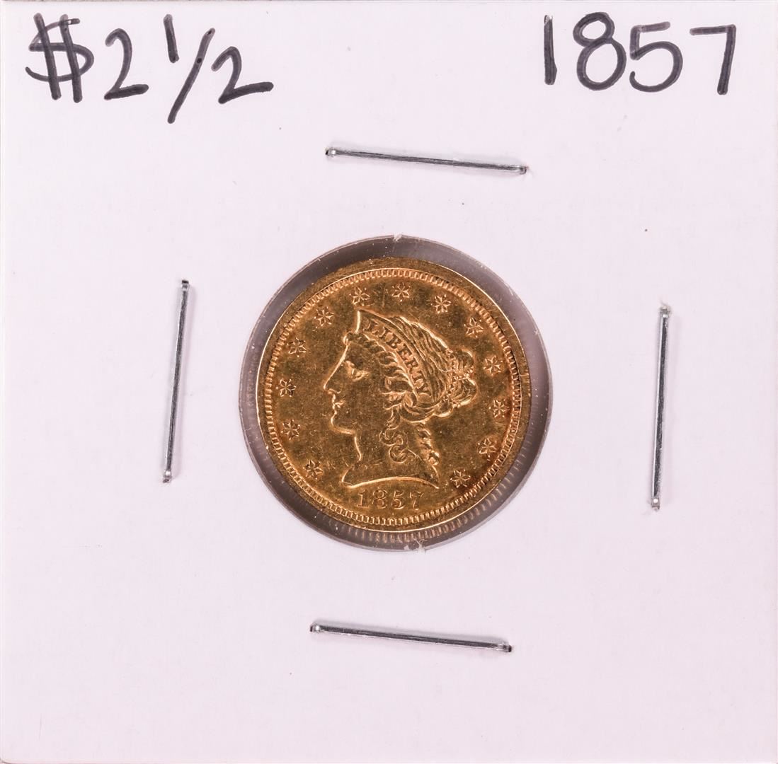 One 1857 $2 1/2 Liberty Head Quarter Eagle Gold Coin.