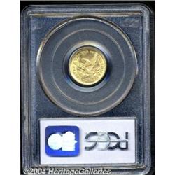 <B>1857<$2 1/2> MS63 PCGS.</B></I> This snappy quarter eagle possesses bright, brassy-gold coloration with booming underlying luster. The design elements are mostly sharply struck, though a touch of softness is seen in one star on the lower left obverse border, and in the feathers on the eagle's legs. A few small, trivial ticks on Liberty's cheek and in the left obverse field are not bothersome. <BR><BR><B>Important notice:</B> Heritage usually auctions material at the rate of 200-250 lots per hour. On some occasions eBay Live bid software or the Internet may not be able to keep up with the pace of the auction. We recommend placing a realistic absentee bid now as insurance to avoid disappointment. Occasionally the auctioneer may eliminate or reject an eBay Live bid, and the auctioneer may also reopen a lot after the close of the eBay live bidding (usually because we missed an audience bid), and may reject your bid even if it shows you as the winning bidder. By bidding via eBay Live, you agree that Heritage may award the lot to another bidder at its sole discretion under the circumstances described above or any other reasonable circumstances. Since eBay bids are not shown to us until we open the lot on the floor, we treat those bids just like floor bids. In most cases the floor responds before the eBay bid is presented to us, due to Internet lag time, so for consistency we have made it a policy that floor bids are always considered first over tie eBay live bids. Also please note that all Heritage lots purchased through eBay Live carry a 20% Buyer's Premium. Please make sure you read the Terms and Conditions before you bid. </span></font></tr></table></td></tr></table>