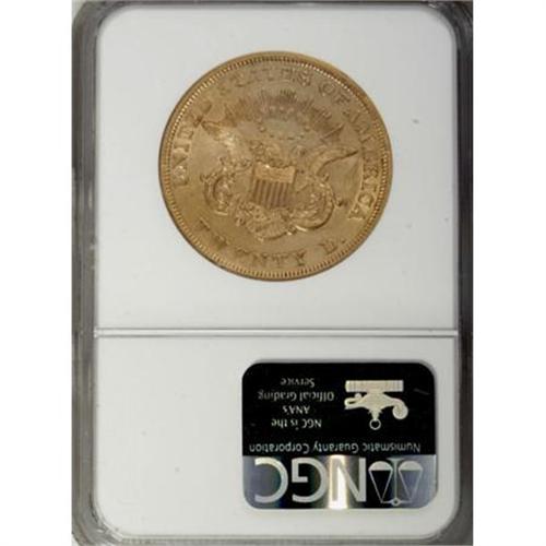 <B>1857 $20 AU53 NGC.</B></I> A bright, olive-green example with plenty of luster seen on both sides. Extremely clean and smooth, with greater eye appeal than typically seen in this grade.<BR><BR><B>Coin Engraver:</B> James B. Longacre<BR><BR><b>Shipping:</b> Coins & Currency (<a target="_blank" href="http://www.heritageauctions.com/common/shipping.php">view shipping information</a>)