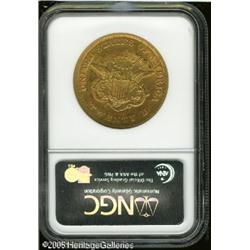 <B>1857 $20 AU55 NGC.</B></I> A few scrapes are noted in the fields. This example has light yellow color with deeper orange toning around the borders.<BR><I>From The Richard J. Chouinard Collection of United States Coins, Part Two.</B></I> Lot:8960
