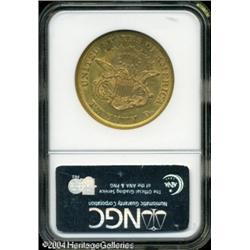 1857 $20 AU55 NGC. Nicely defined, except for Libe <B>1857 $20 AU55 NGC.</B></I> Nicely defined, except for Liberty's hair curls, and traces of luster in the recessed areas. The surfaces are apricot-gold, and display a few light to moderate contact marks. <BR><BR><B>Important notice:</B> Heritage usually auctions material at the rate of 200-250 lots per hour. On some occasions eBay Live bid software or the Internet may not be able to keep up with the pace of the auction. We recommend placing a realistic absentee bid now as insurance to avoid disappointment. Occasionally the auctioneer may eliminate or reject an eBay Live bid, and the auctioneer may also reopen a lot after the close of the eBay live bidding (usually because we missed an audience bid), and may reject your bid even if it shows you as the winning bidder. By bidding via eBay Live, you agree that Heritage may award the lot to another bidder at its sole discretion under the circumstances described above or any other reasonable circumstances. Since eBay bids are not shown to us until we open the lot on the floor, we treat those bids just like floor bids. In most cases the floor responds before the eBay bid is presented to us, due to Internet lag time, so for consistency we have made it a policy that floor bids are always considered first over tie eBay live bids. Also please note that all Heritage lots purchased through eBay Live carry a 20% Buyer's Premium. Please make sure you read the Terms and Conditions before you bid. This lot is being auctioned in conjunction with a live floor auction by Heritage Galleries & Auctioneers. All final auction and invoice information will be supplied by Heritage Galleries & Auctioneers, and all other information should be considered preliminary. Lot:6840