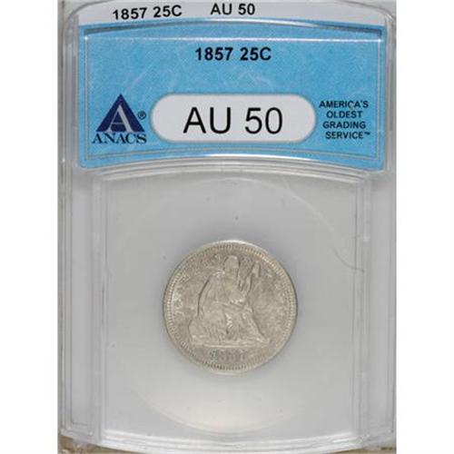 1857 25C AU50 ANACS. NGC Census: (8/311). PCGS Pop