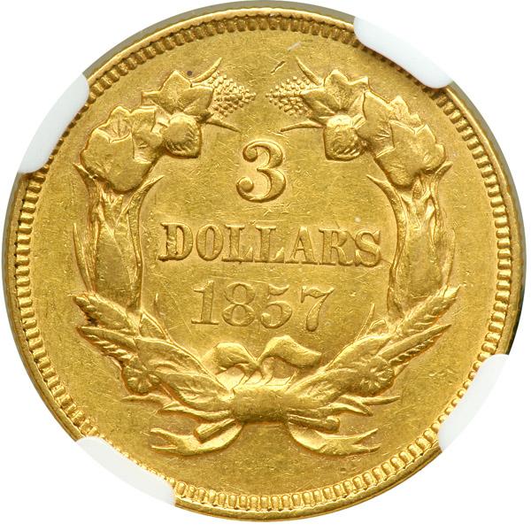 1857. NGC graded AU-55. Light even toning. Mintage of 20,891 struck (PCGS # 7976) .