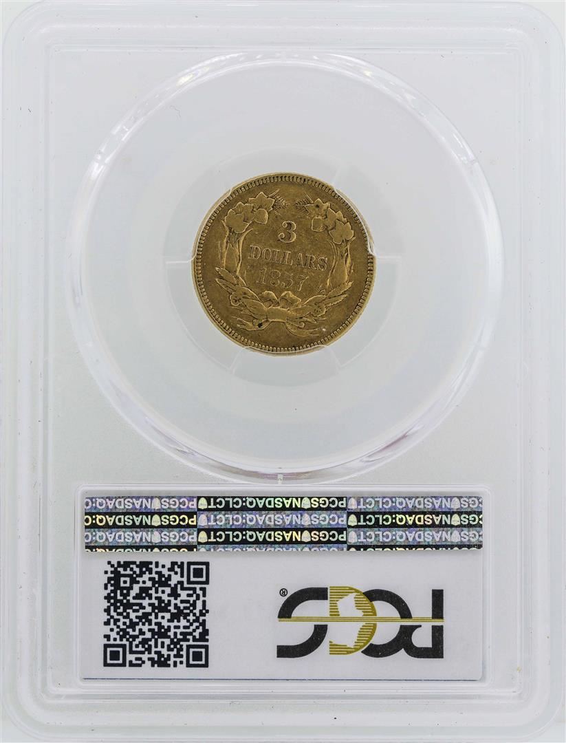 One 1857 $3 Indian Princess Head Gold Coin PCGS VF30. PCGS Graded.