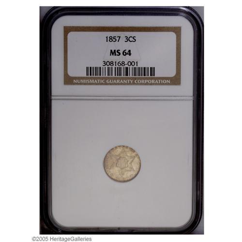 1857 3CS MS64 NGC. Softly struck on the right side obv 1857[3CS] MS64 NGC.